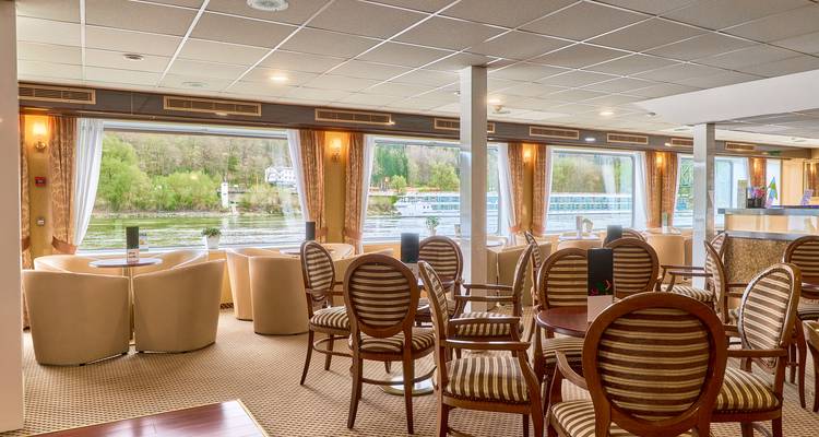 Restaurant, 3 bars, wellness area with sauna, jacuzzi and fitness area & swimming pool. Easily accessible medical services on land. All meals are served in the cozy restaurant "Panorama". You will be attended by a friendly and highly professional team. Payments can be made in Euros or with credit cards (Visa/Mastercard). Smoking is prohibited on board the ship, except on the Sun Deck.