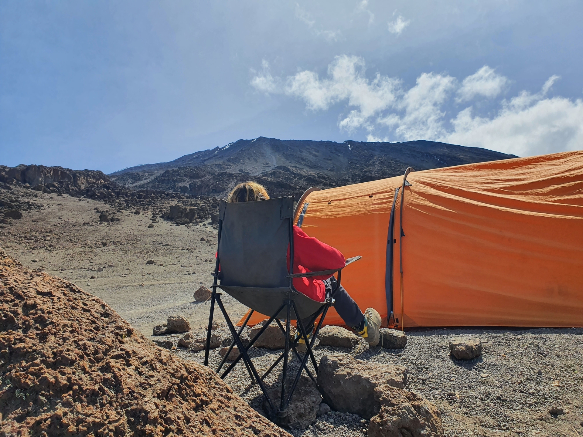 - Trek across the Saddle lunar desert between Mawenzi and Kibo to School Camp at 4,750m (4-5 hours walking)