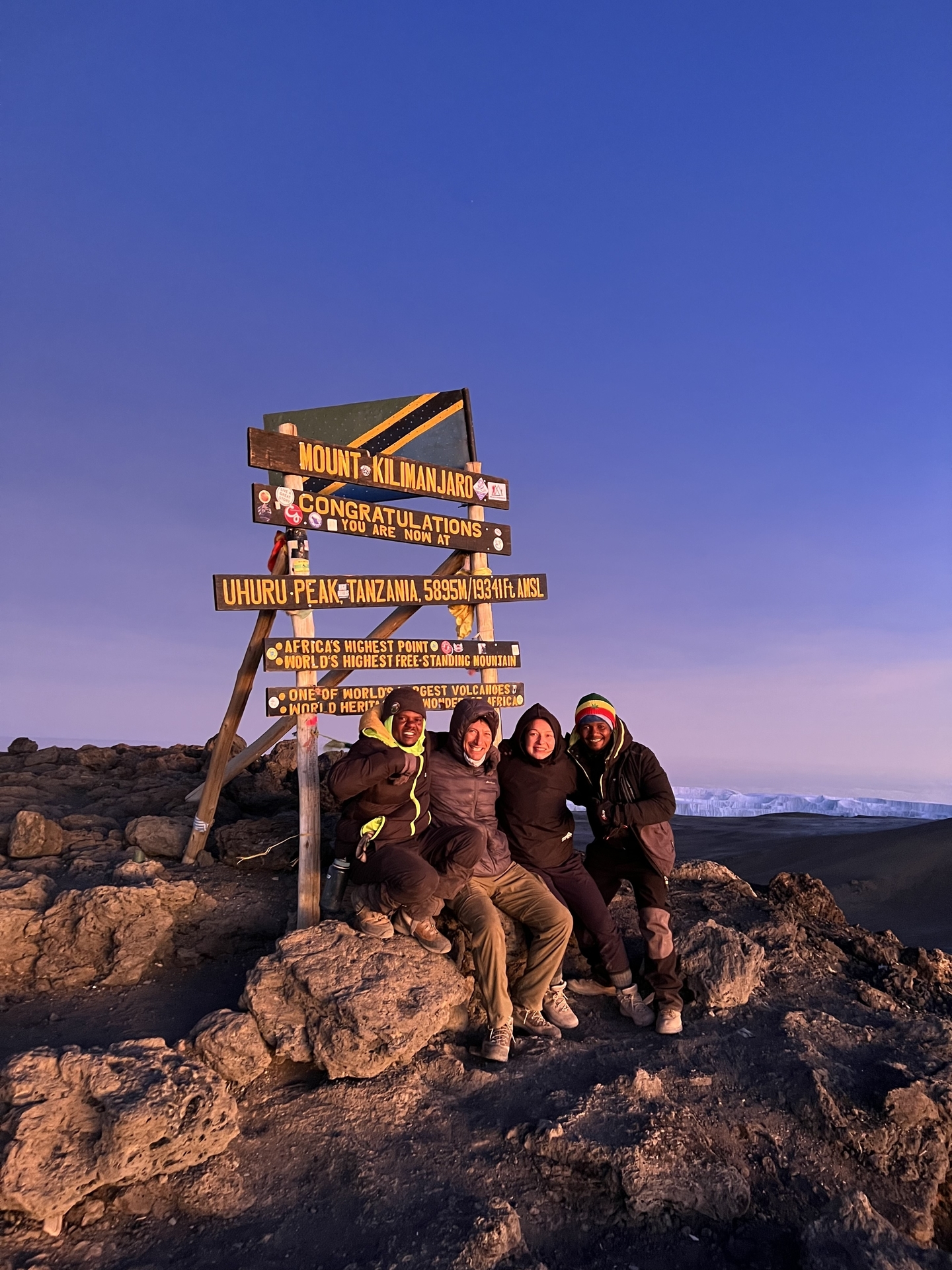 - Summit at Uhuru Peak (5,895m) - roof of Africa