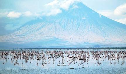 Several walks explore the Lake Natron area. You'll walk across mud flats to see flamingos and get views of the active Oldoinyo Lengai volcano. Later, trekking goes up to Engero Sero Waterfalls through a shady gorge with river crossings that lead to a natural swimming pool surrounded by rock walls and palm trees. You'll stay overnight at Kamakia camp.