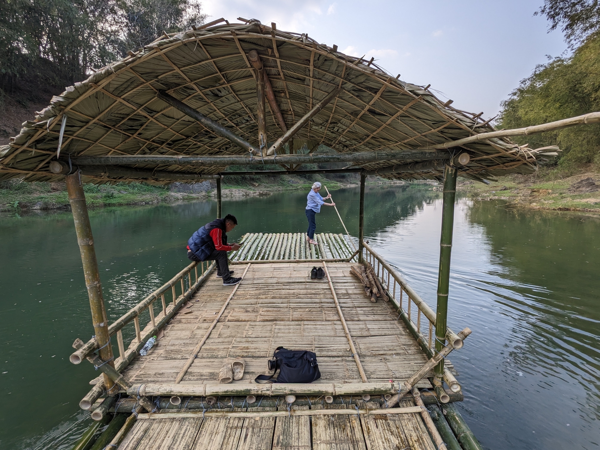 - Bamboo rafting experience on river at Chieu Lau dam