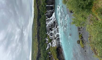 - Visit Hraunfossar waterfalls in lava fields
