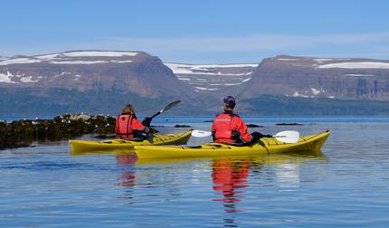 - Kayaking past Kambsnes peninsula