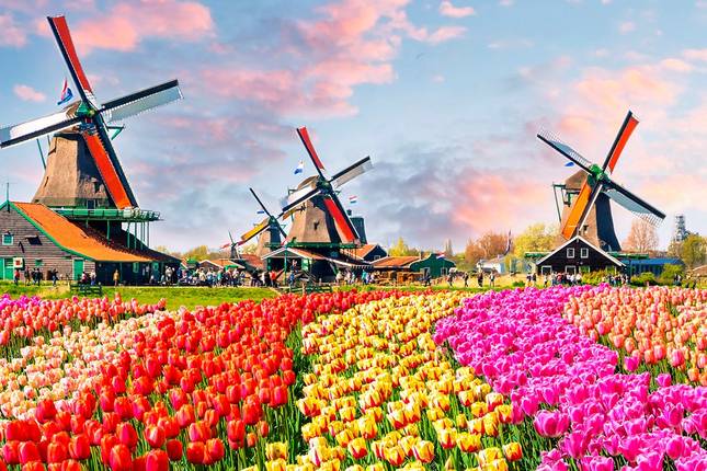 - Visit to Keukenhof Gardens - 32 hectares (79 acres) of spring-flowering bulbs with more than seven million bulbs planted including 800 varieties of tulips, hyacinths, orchids of every colour, statues commissioned by world-renowned artists