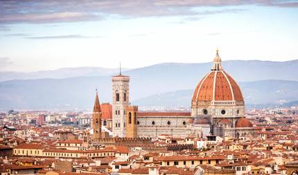 - Guided walking tour of Florence including Piazza della Repubblica, Loggia del Mercato Nuovo, Ponte Vecchio, Piazza della Signoria, Palazzo Vecchio, Cathedral of Santa Maria del Fiore, Brunelleschi's Dome, Baptistery, and Giotto's Bell Tower