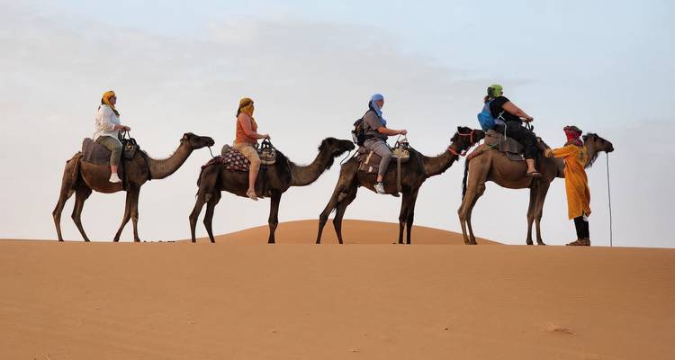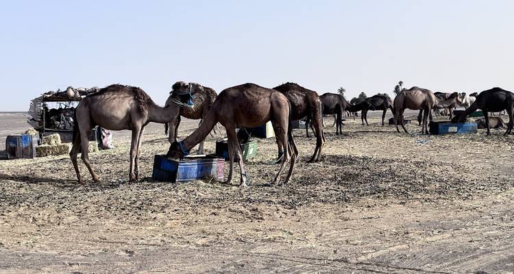 - Set off by camel to the desert camp and meet locals