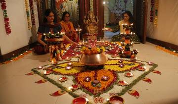 - Diwali celebration at heritage haveli with Rajput family including Diwali puja, fireworks, rangoli-making, henna (mehndi), cultural dances, and royal dinner