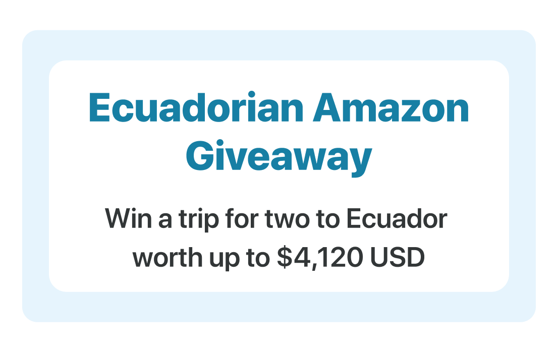 Sign up by February 28th, 2026 for a chance to win a 8-day Ecuadorian Adventure for two! (Flights not included)